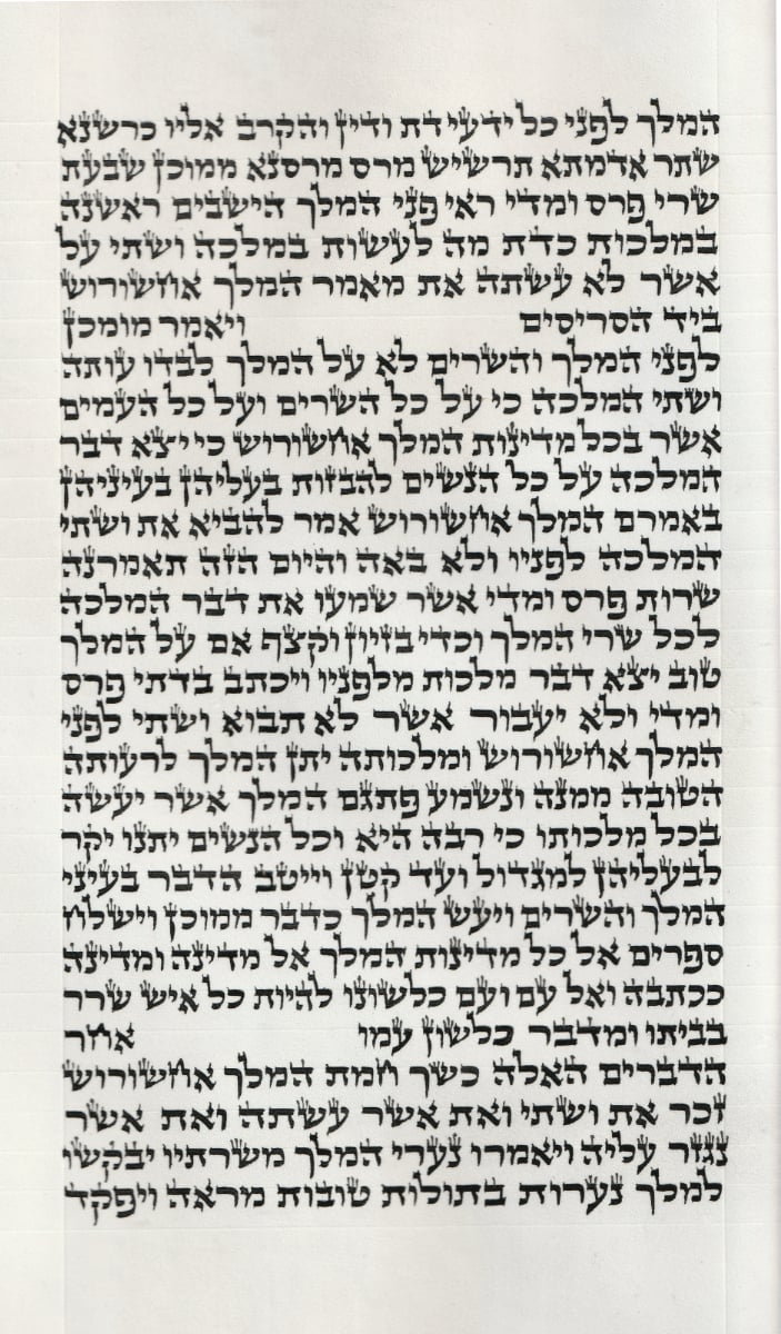 The Megillah is written on fine Klaf Shelil in a 28 line per column format.