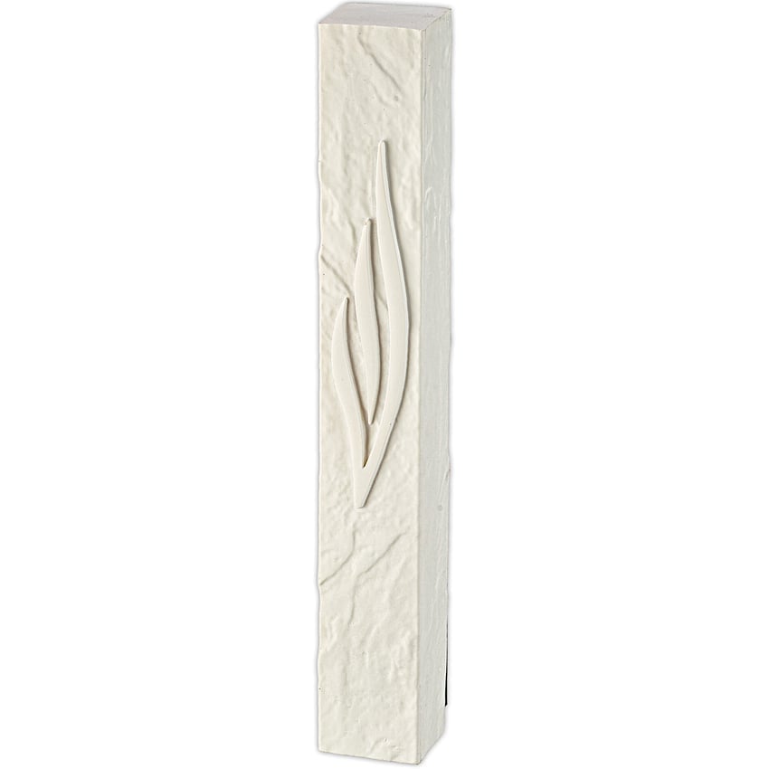 STUNNING STONE-LIKE APPEARANCE: This X-Large white polymer Mezuzah case showcases a beautiful modern stone-like pattern with an elegant stylized Shin that adds timeless beauty to any doorway.